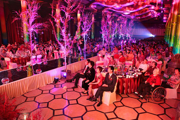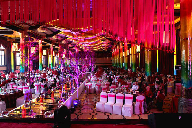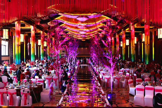 千余平的面积及传统中式风格淋漓尽致的结合。如意的主题,如意的寓意将给婚礼增添无限的喜气和福气。巨大LED屏展示高清的幸福历程,还原真实声音的音响及专业的灯光,带来前所未有的震撼。60桌的宴会及千余人的会议、论坛、气势恢宏。